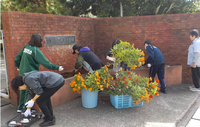 本年度2回目のPTA花壇整備が行われました。生徒たちも一生懸命取り組み、色とりどりの花からなる綺麗な正門となりました。