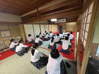 各クラスが、和菓子づくり、八ツ橋づくり、トロッコ列車、座禅に分かれて体験学習をしました。