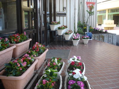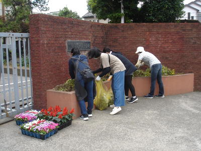 PTA本部役員さんとボランティアの皆様が正門、職員玄関、渡り廊下部分の花壇の花をきれいに植え替えてくださりました。きれいな植物が生徒たちを迎えてくれます。ありがとうございました!