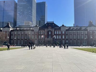 東京駅舎の様子になります。ビル風が吹くと寒いですが、日も出ていて暖かいです。