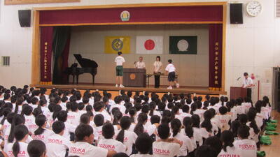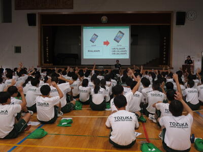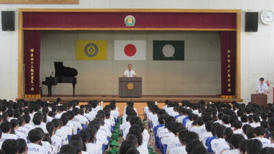 本日から4日間のサマースクールが始まりました。始まりの会を体育室で行い、3校時には講師の方をお招きしてSNS安全教室も行いました。